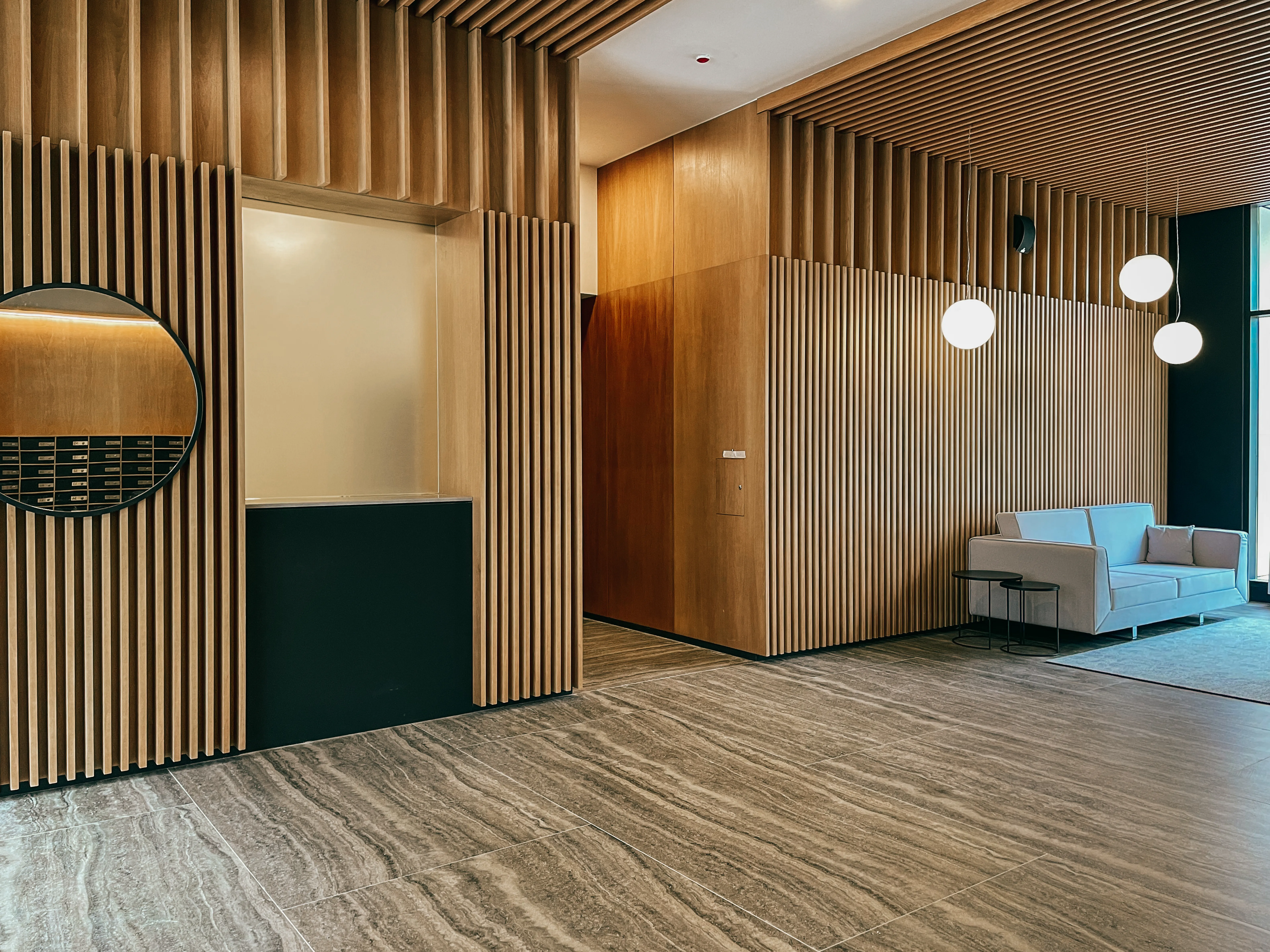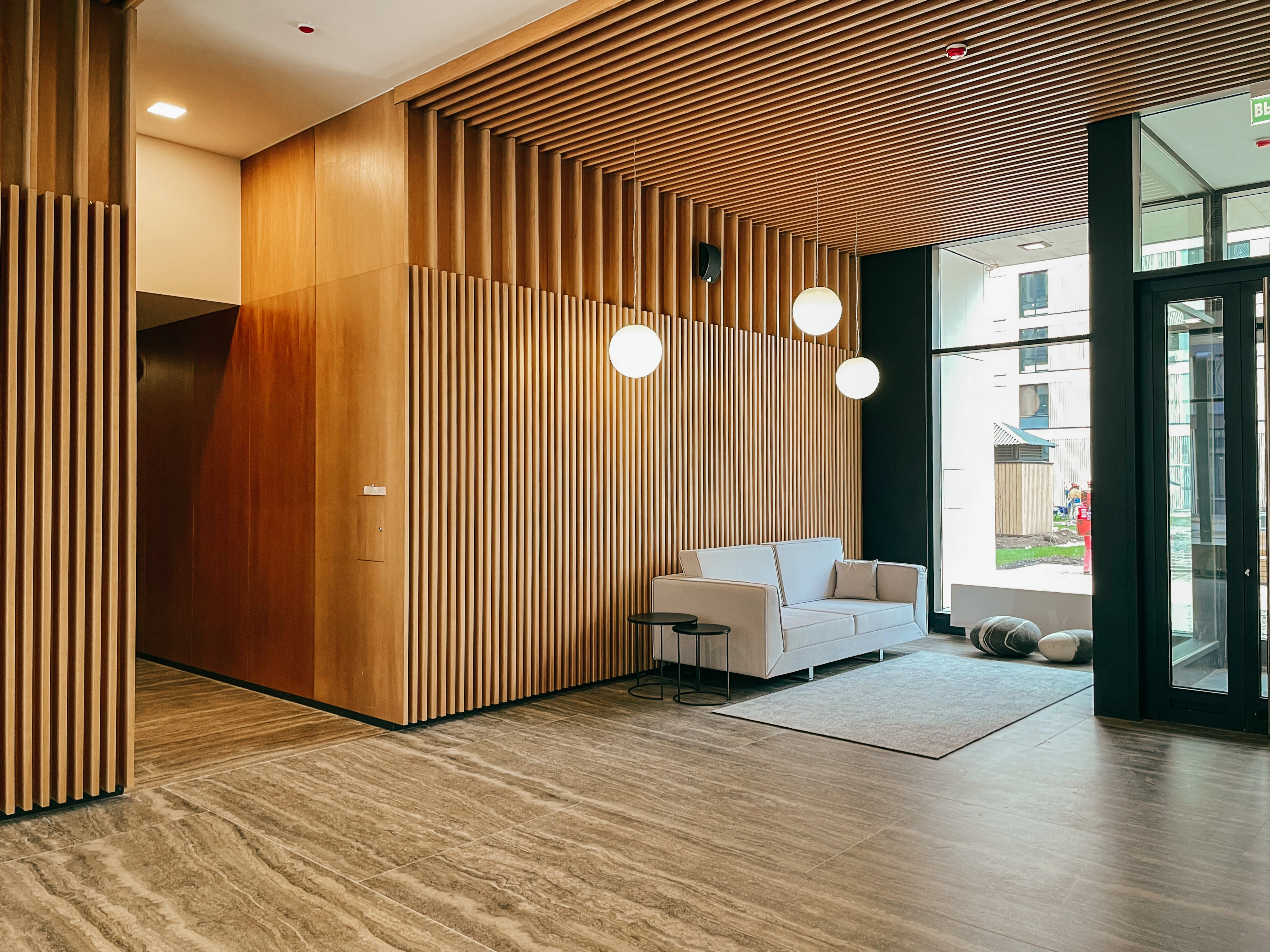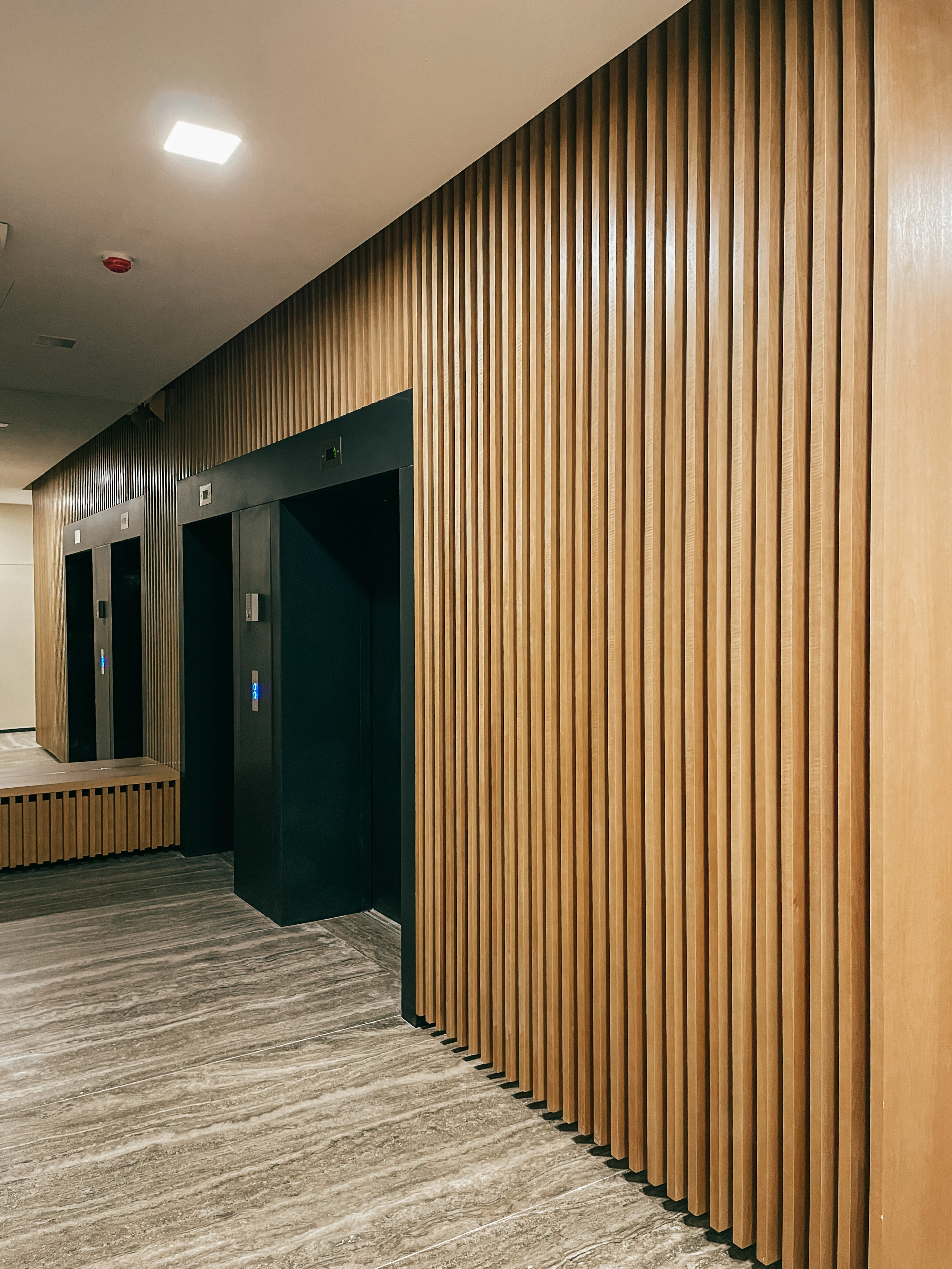 - Изготовили и смонтировали более 4000 м2 шпонированных стеновых панелей, с классом пожарной опасности КМ1