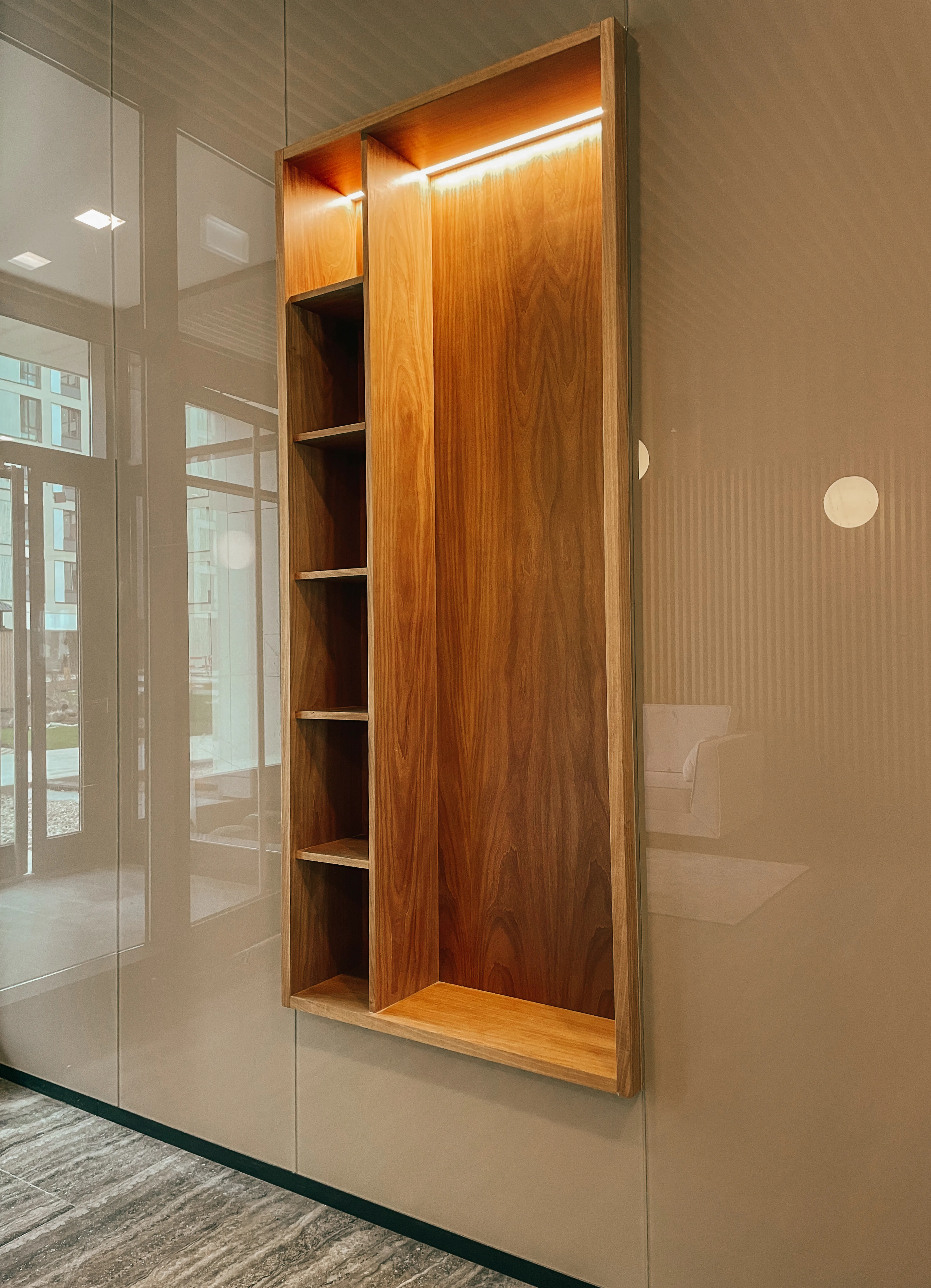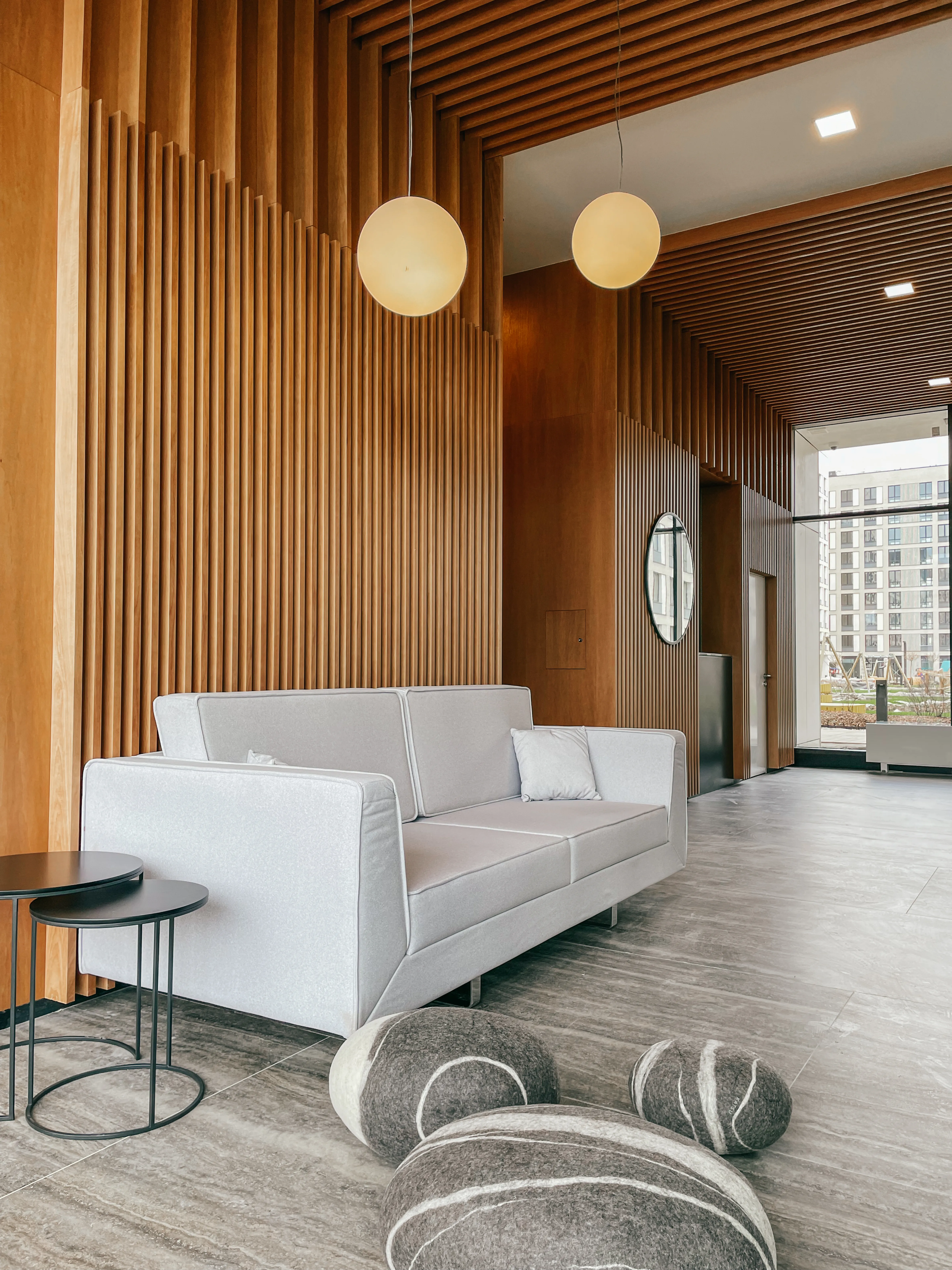 - Разработали и изготовили мягкую мебель, почтовые ящики и элементы декора