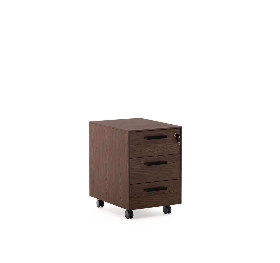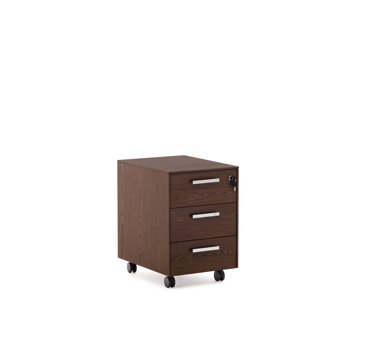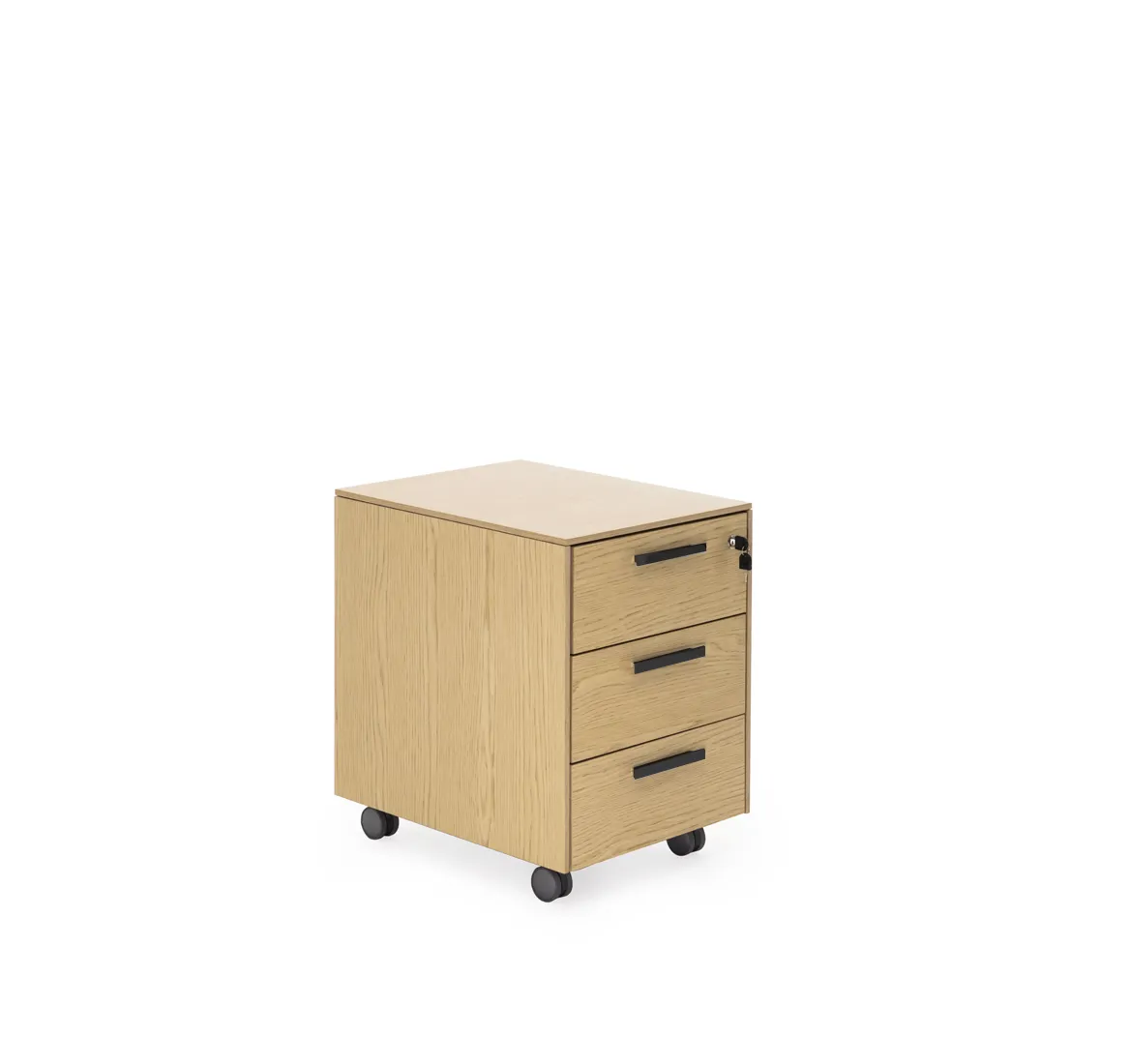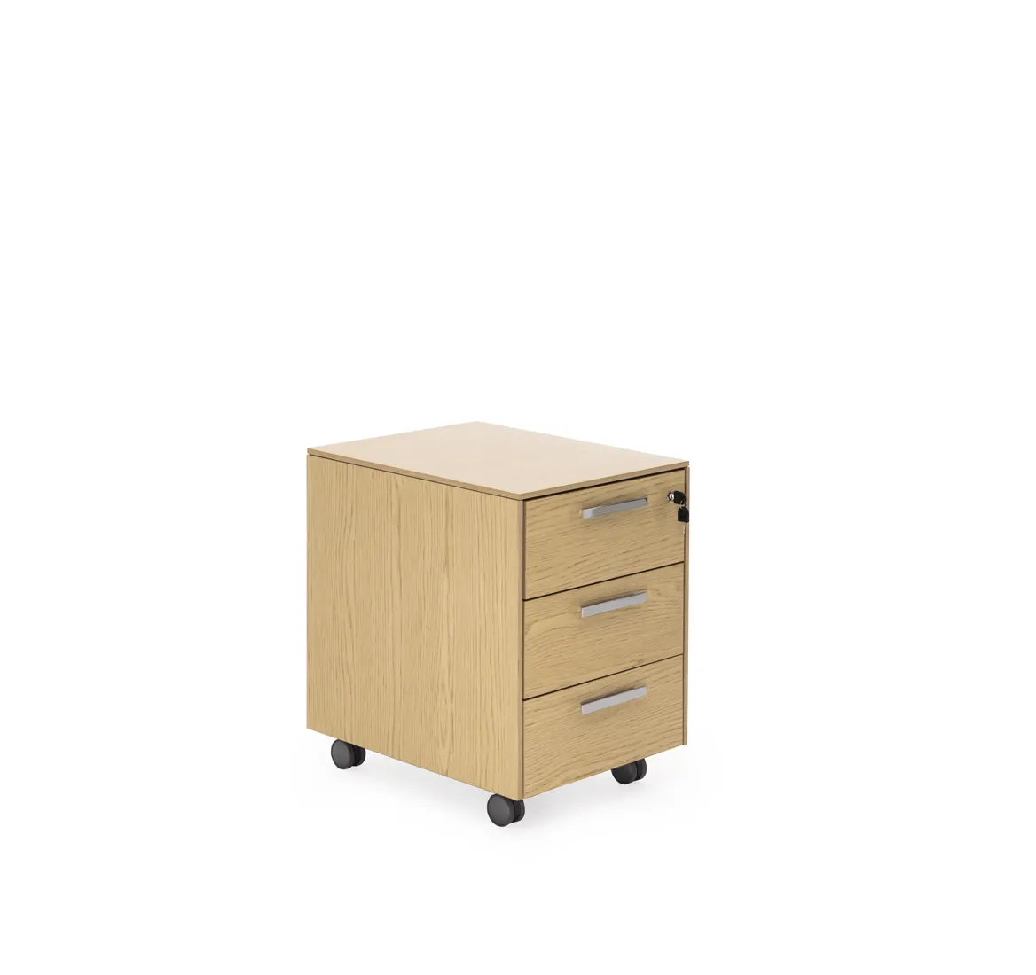 Фасады ящиков укомплектованы ручками под цвет металлических опор письменных столов — хромированные или черные (порошковая покраска).