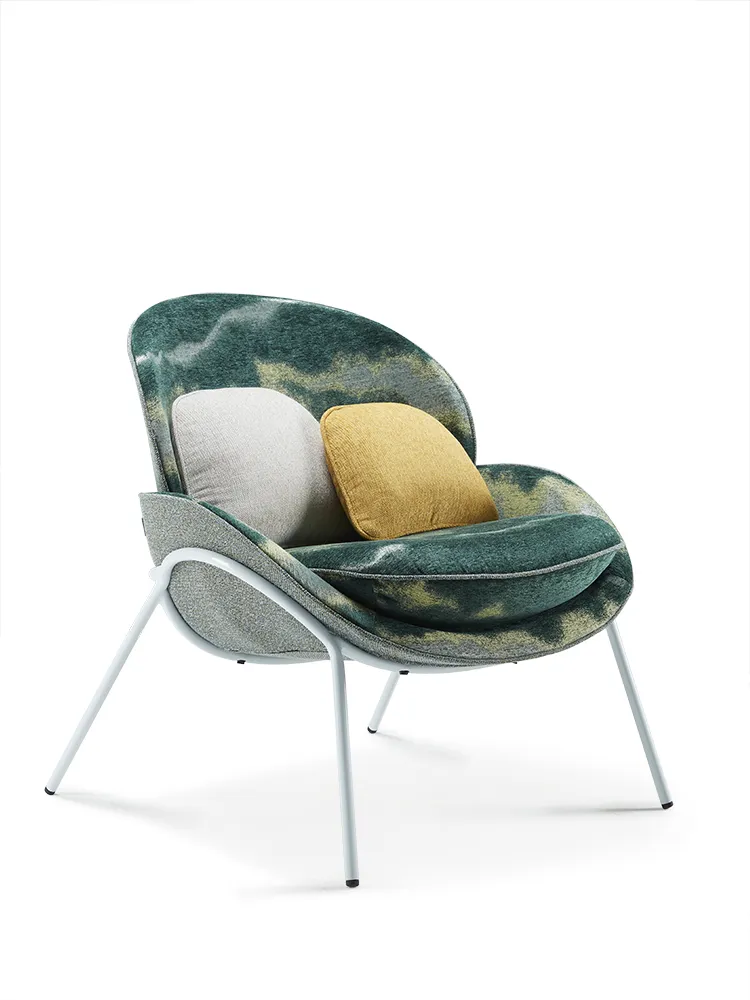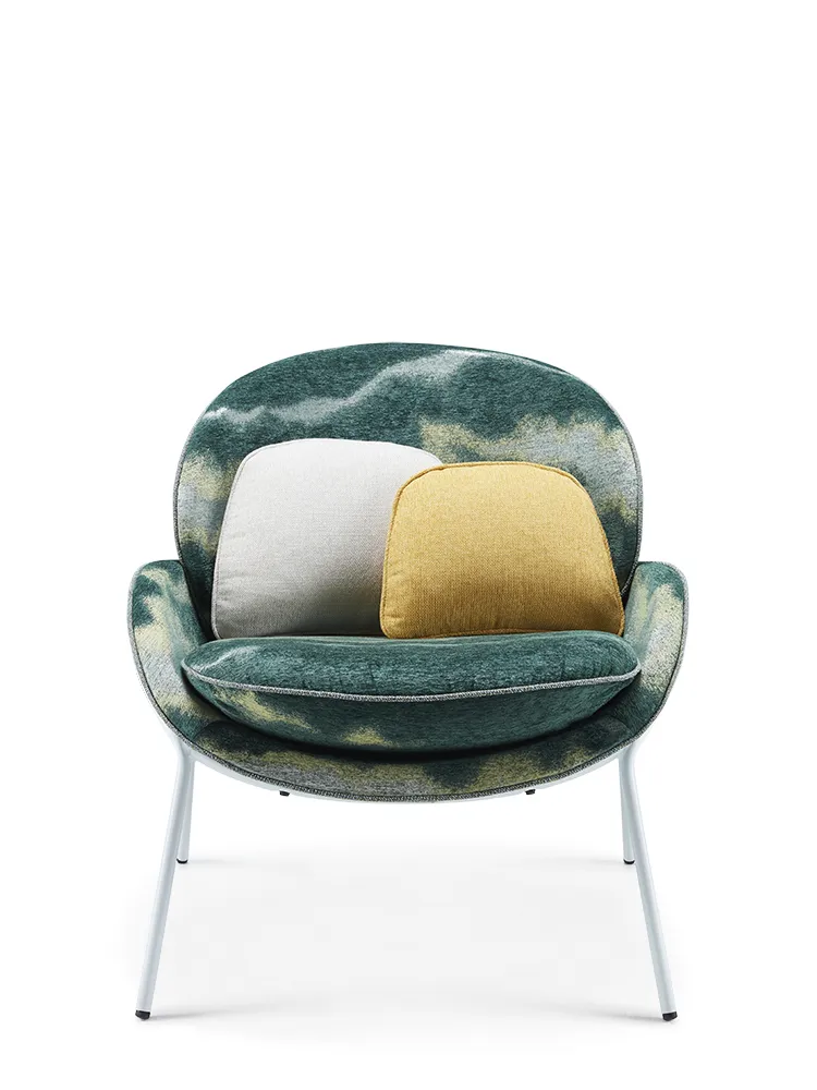 Форма кресла напоминает своей формой фисташку. Аккуратная форма скошенных краев. Сплошная, гладкая спинка. Мягкая опора для локтя