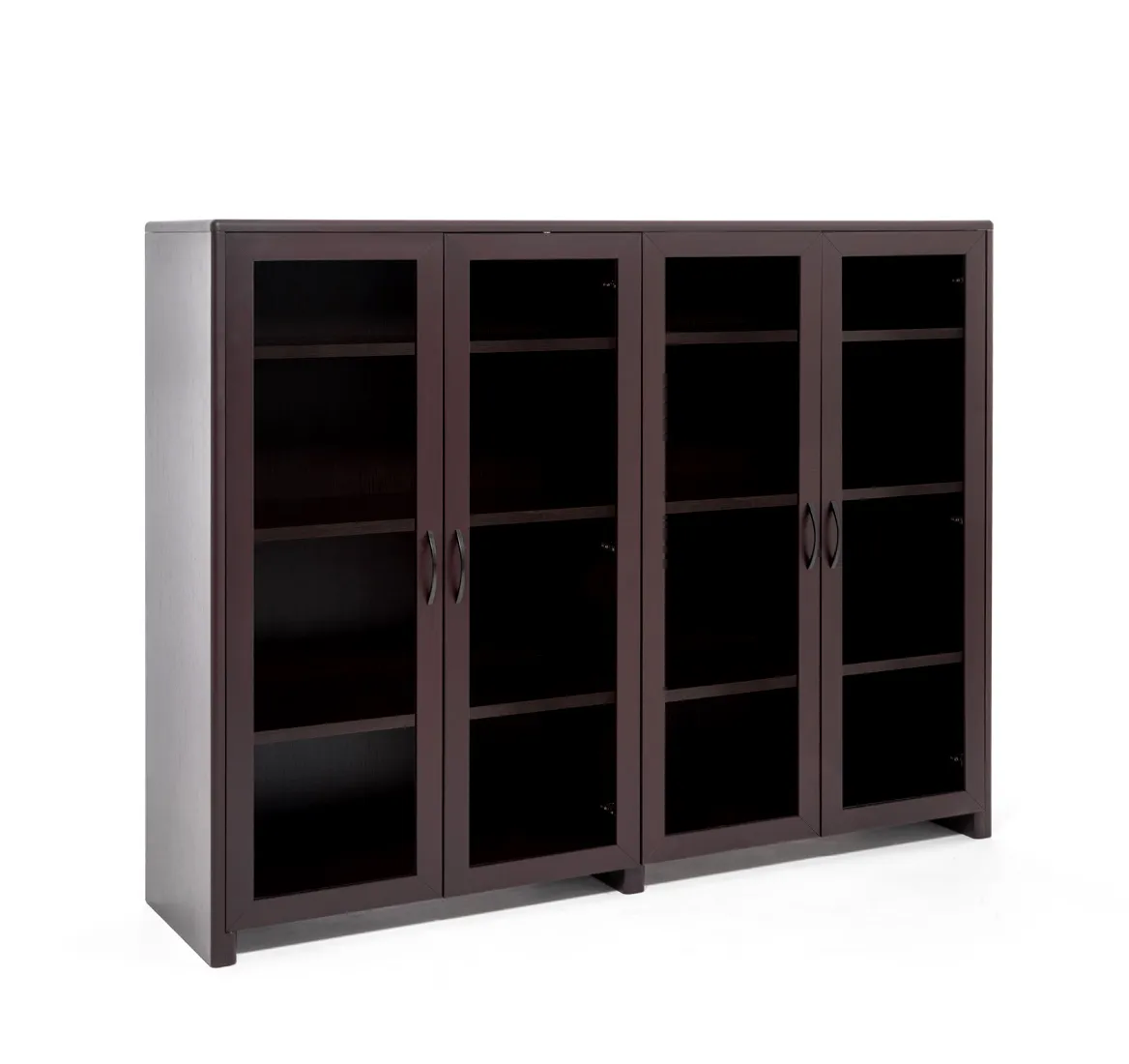 Каждая секция имеет две распашные стеклянные двери в деревянной раме.