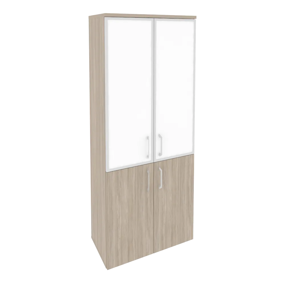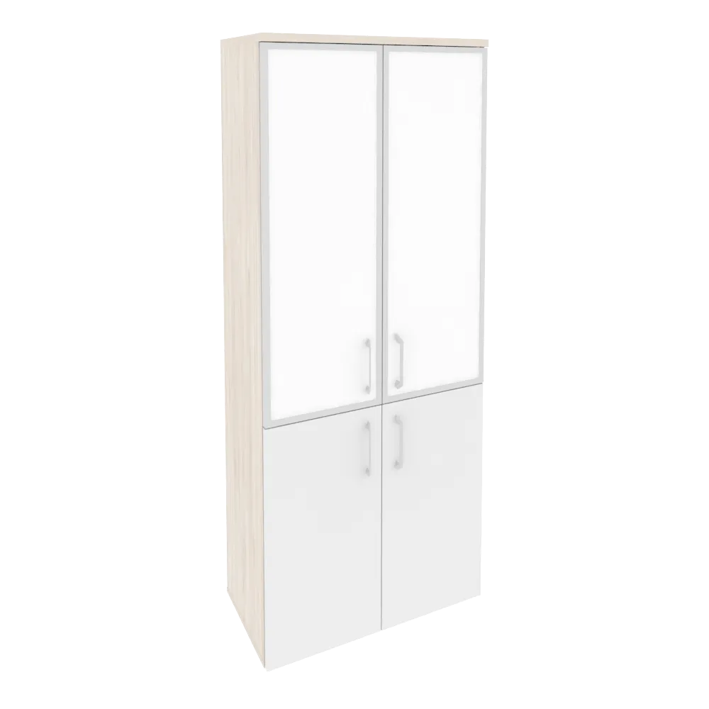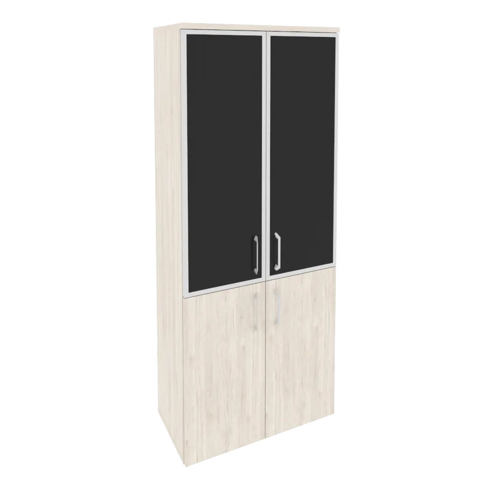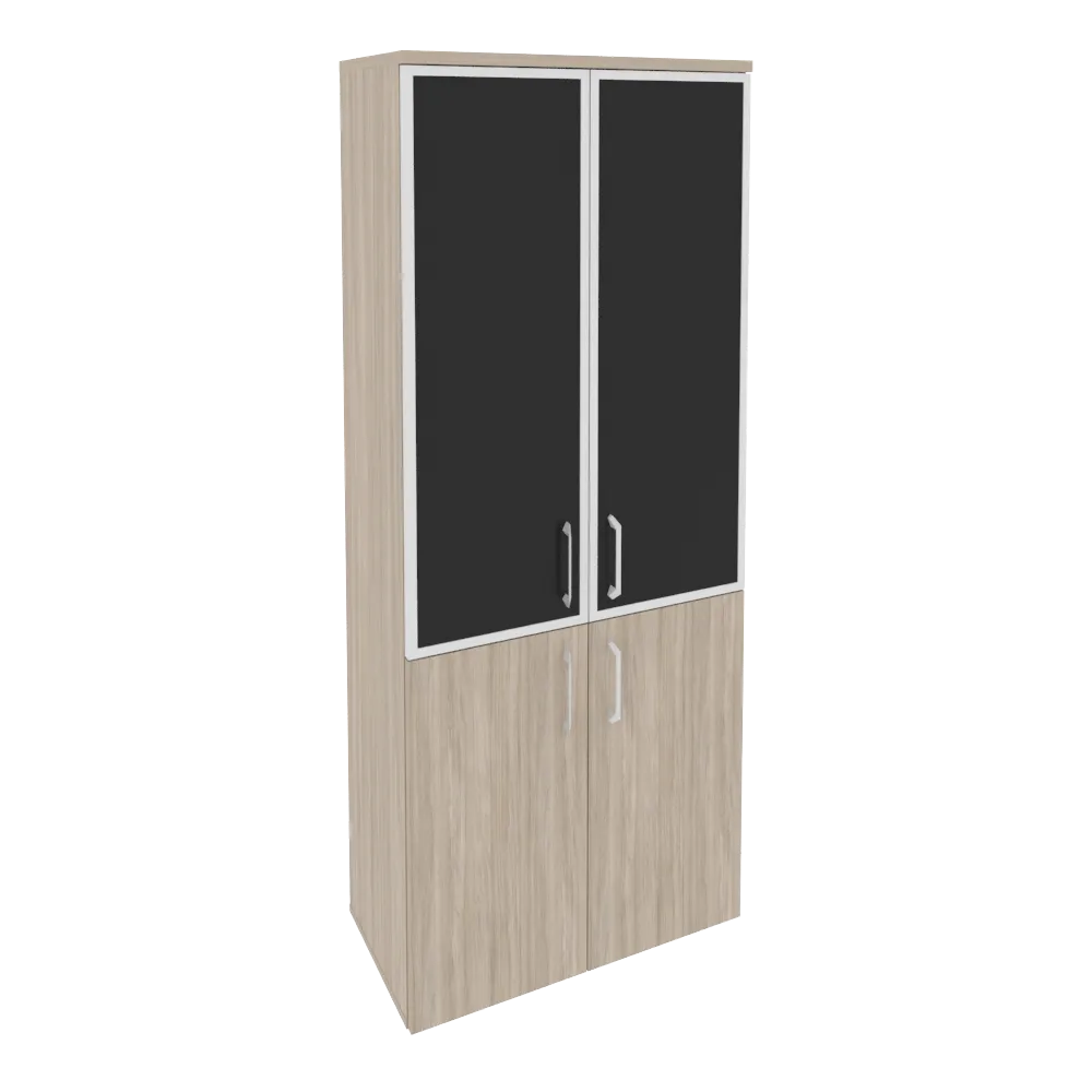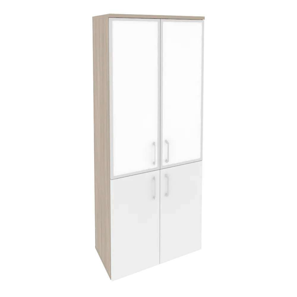 Шкаф высокий широкий (2 низких фасада ЛДСП + 2 средних фасада стекло лакобель в раме)