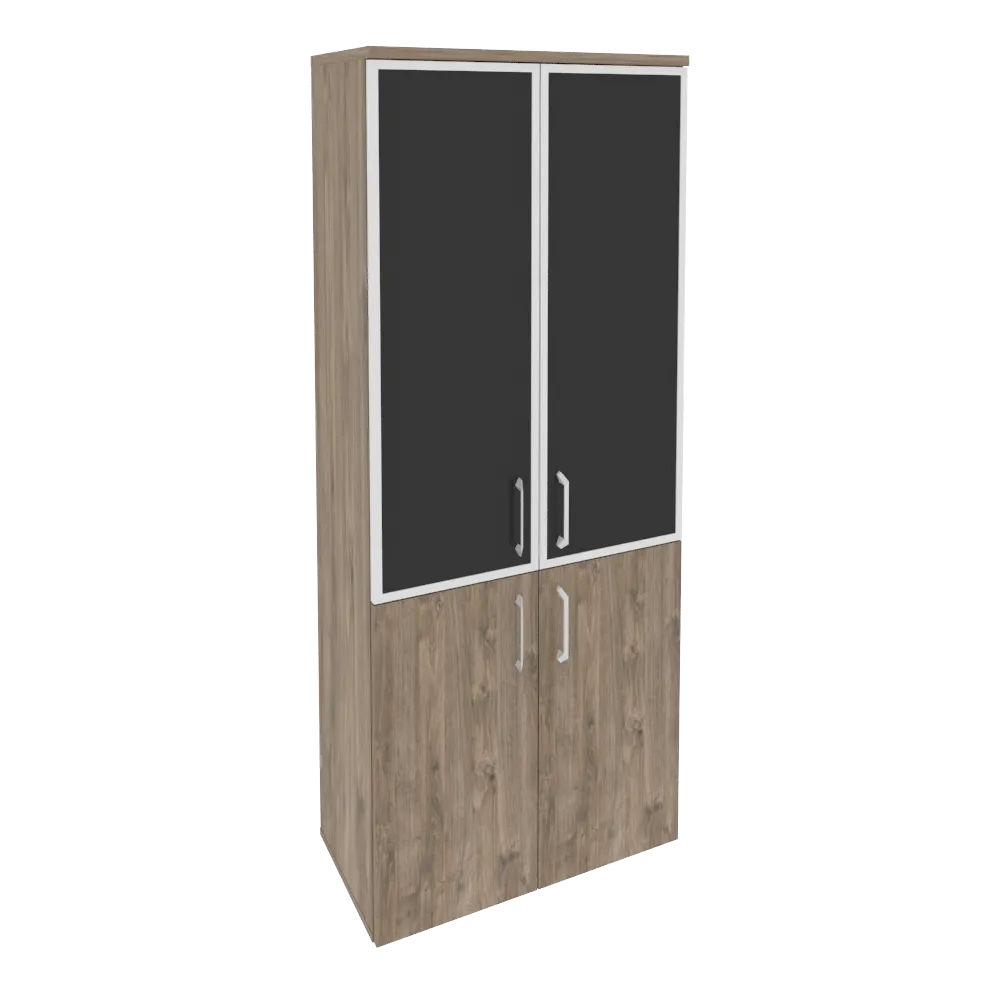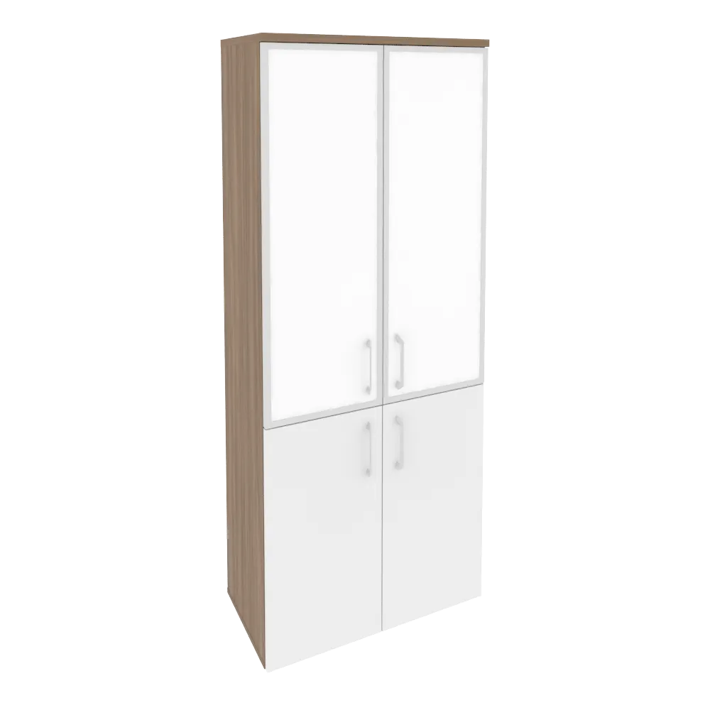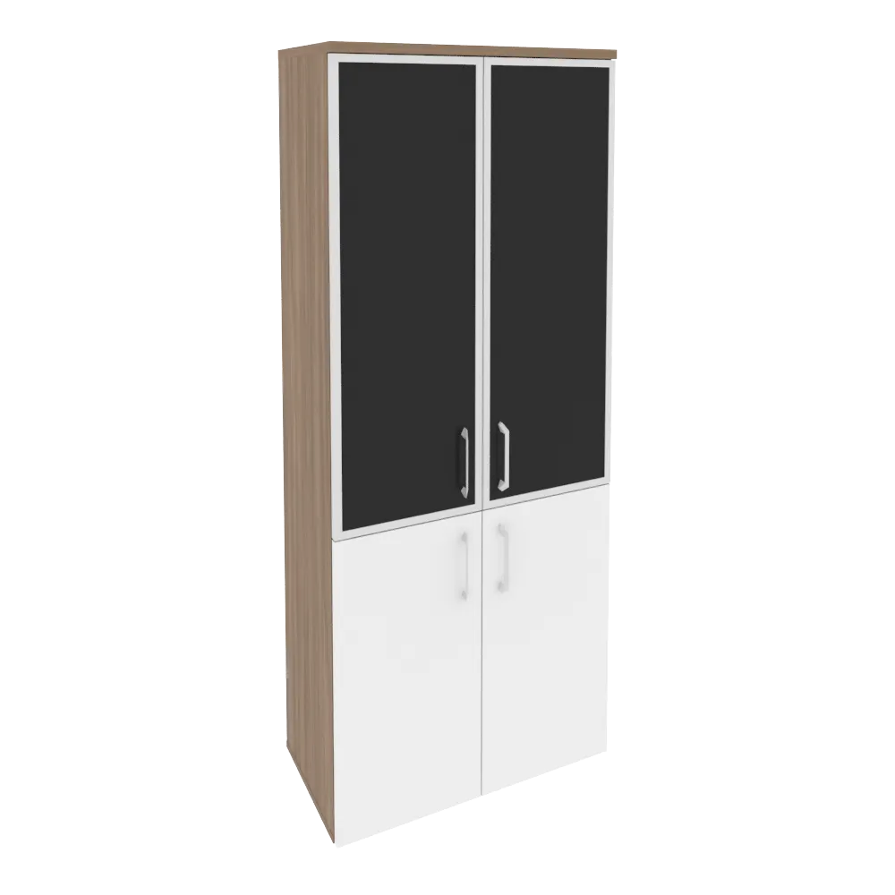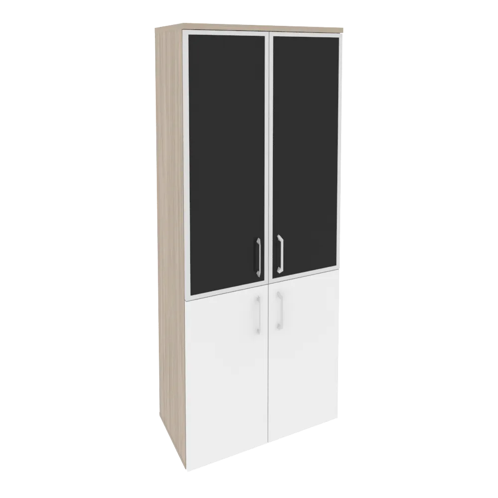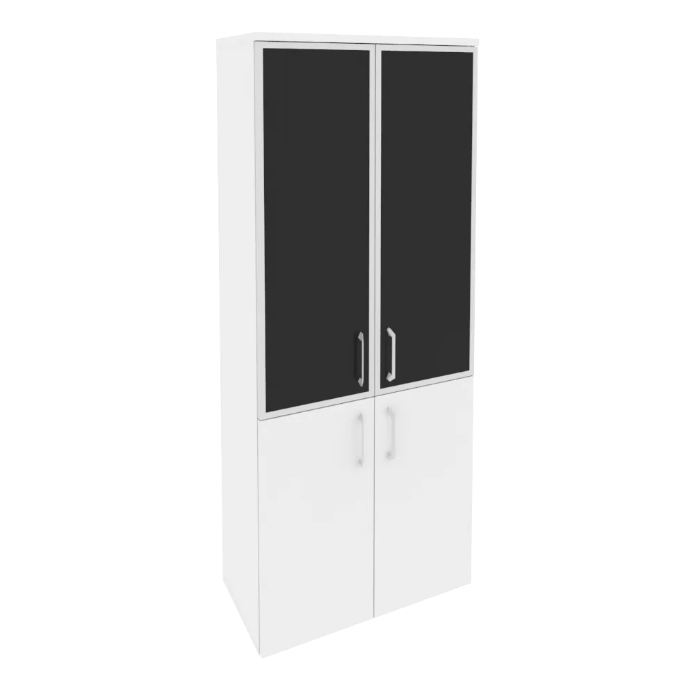 Шкаф высокий широкий (2 низких фасада ЛДСП + 2 средних фасада стекло лакобель в раме) O.ST-1.2R white/black