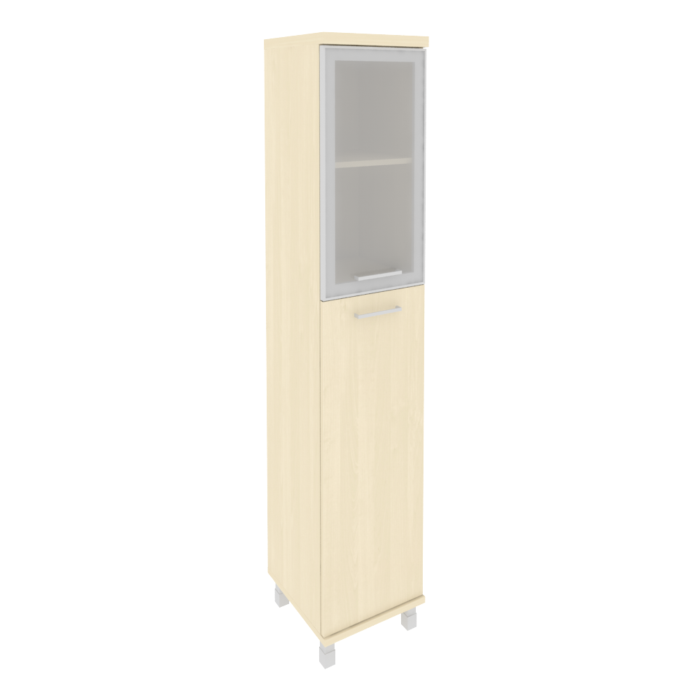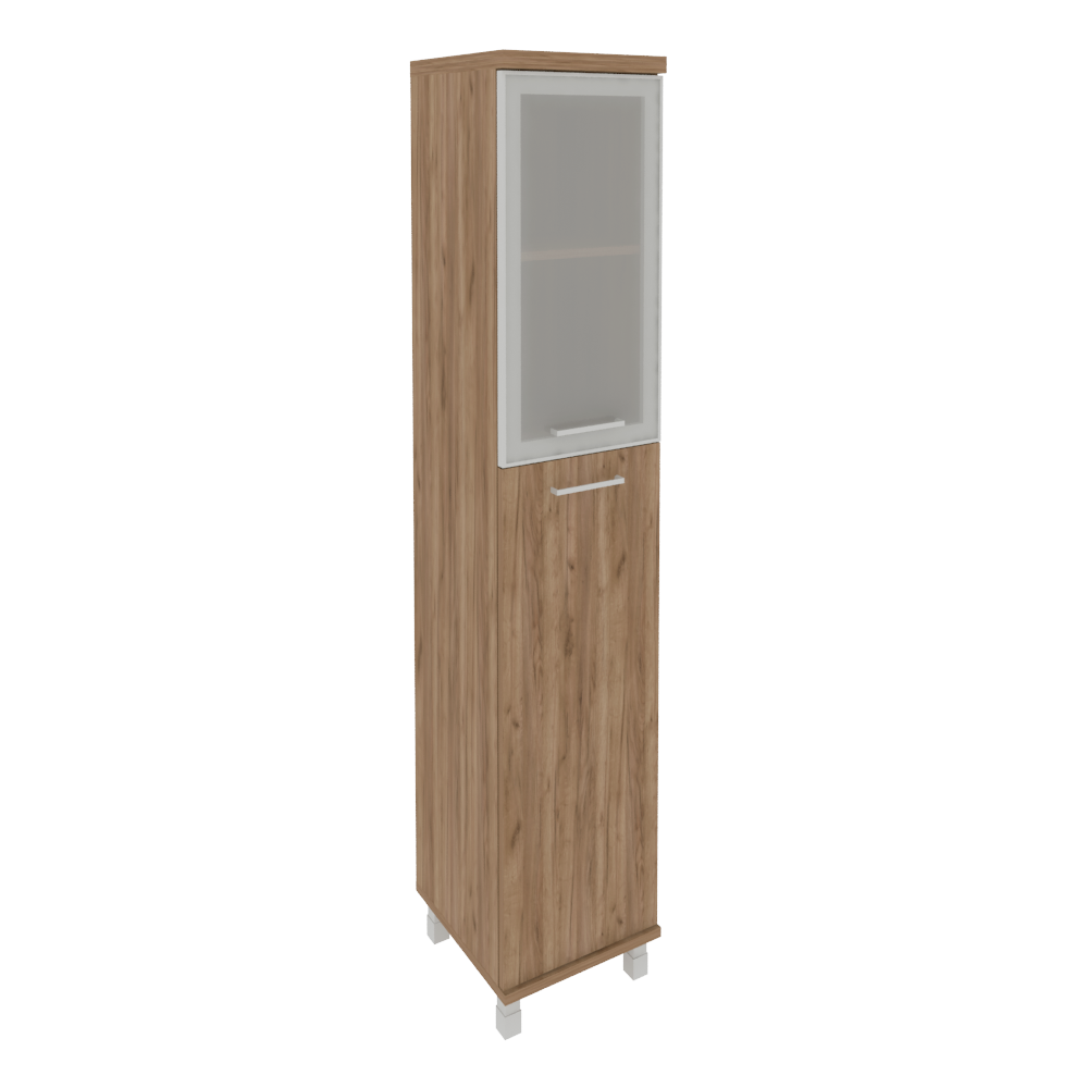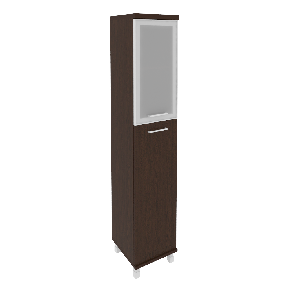 Шкаф высокий узкий левый (1 средняя дверь ЛДСП, 1 низкая дверь стекло в раме) KSU-1.7R(L)