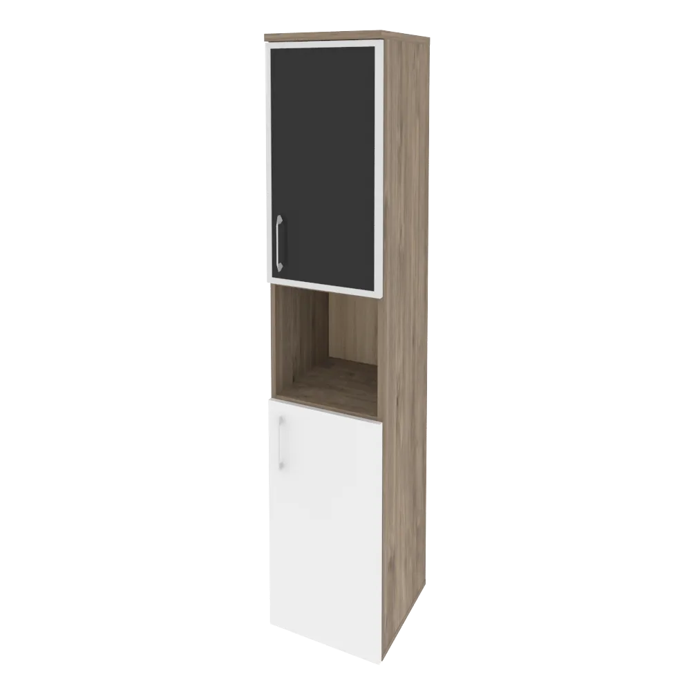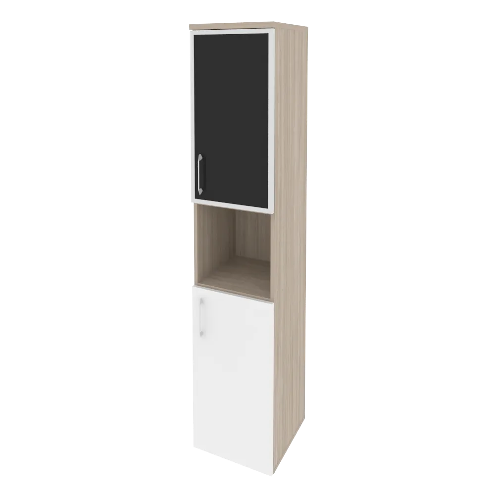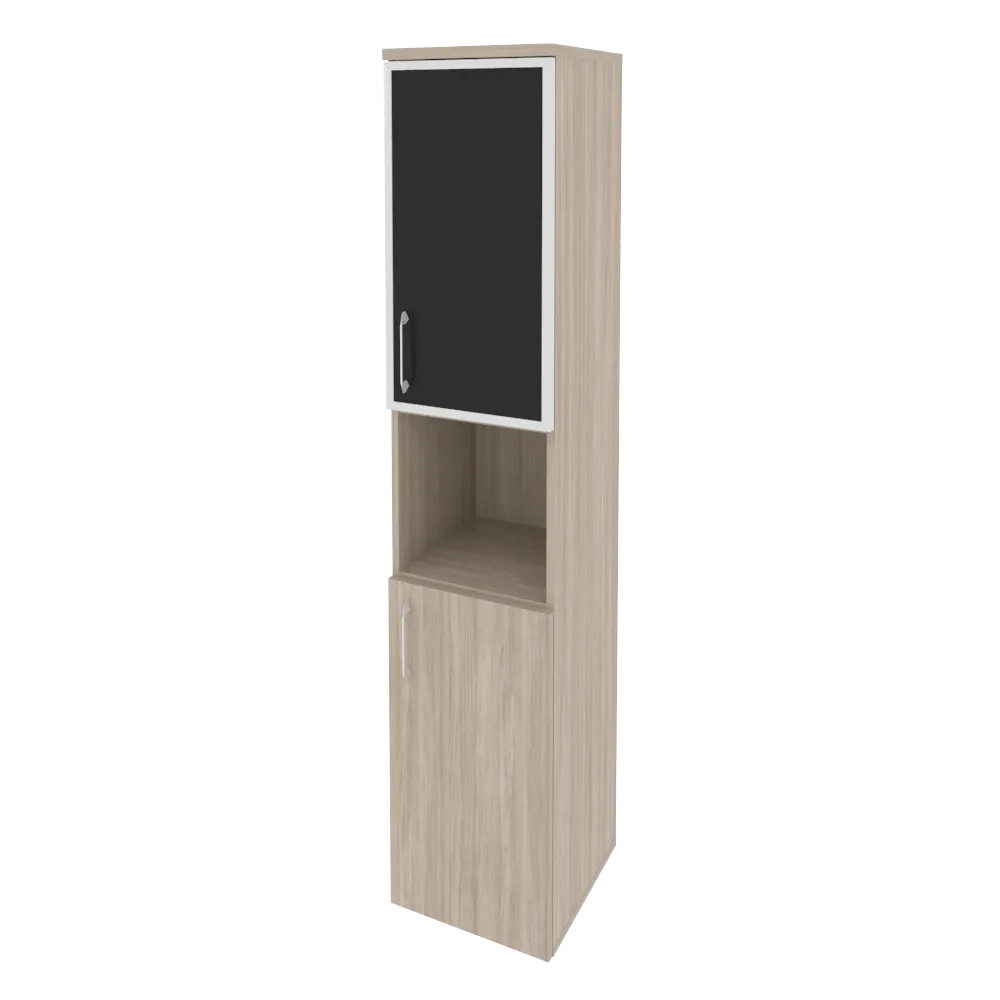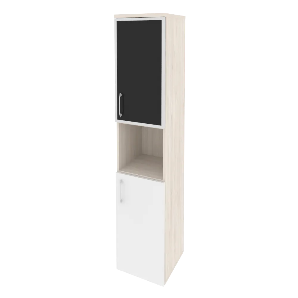 Шкаф высокий узкий правый (1 низкий фасад ЛДСП + 1 низкий фасад стекло лакобель в раме) O.SU-1.4R(R) white/black