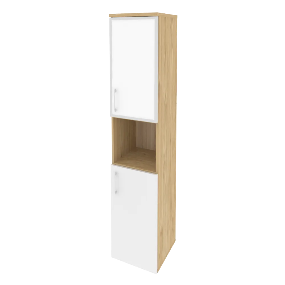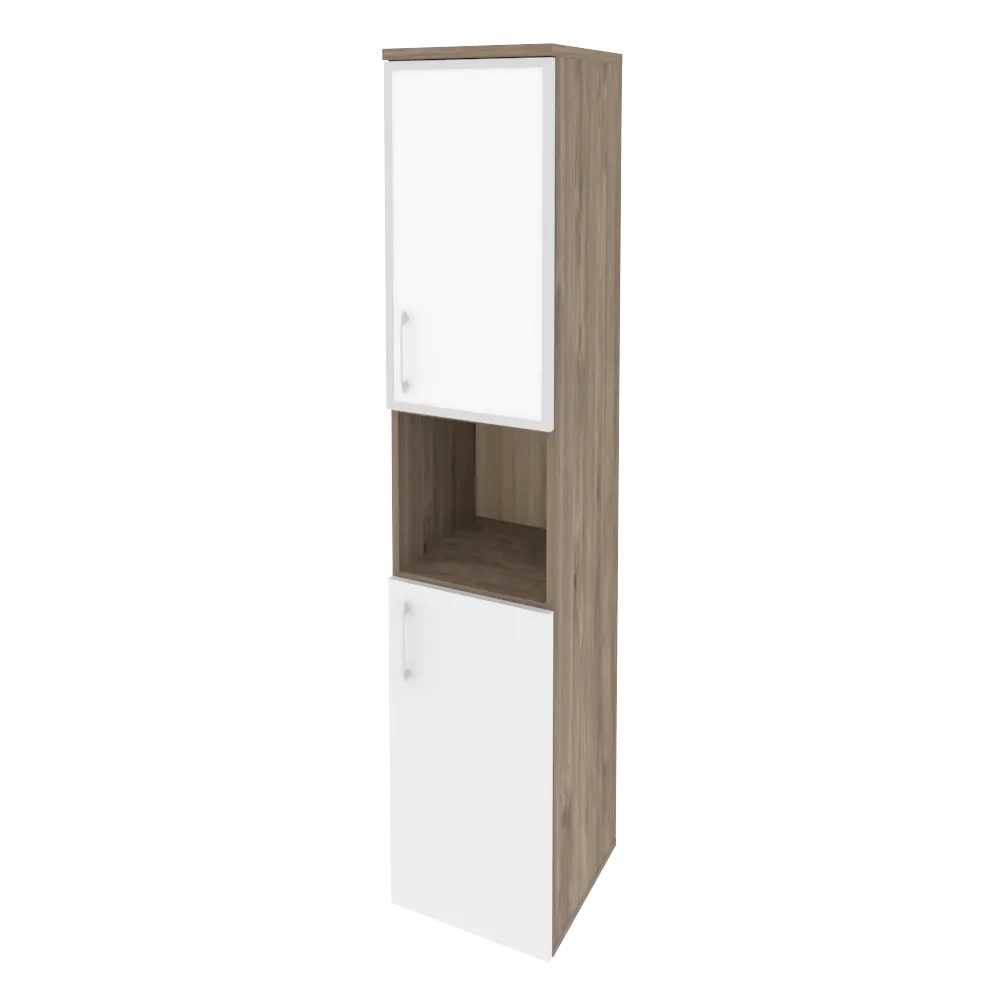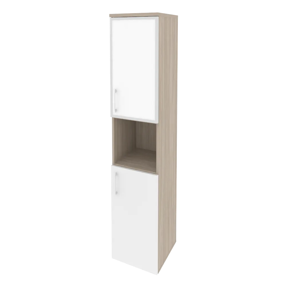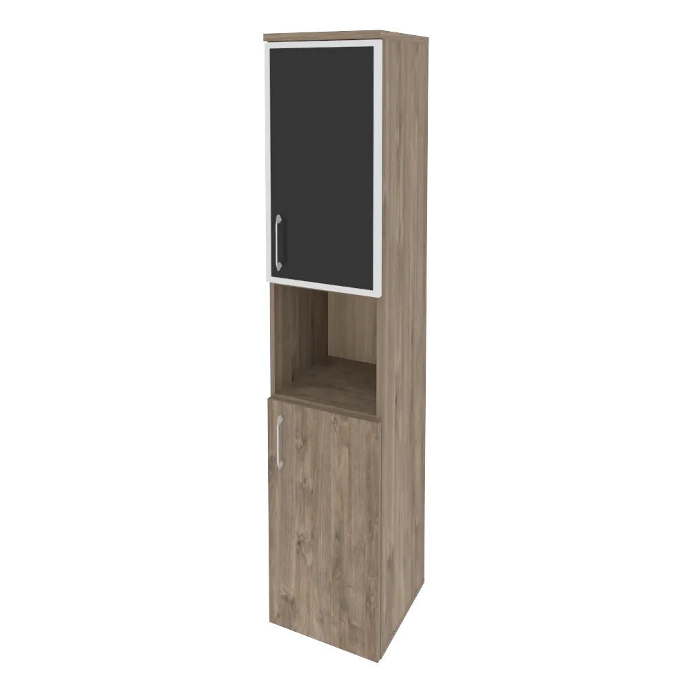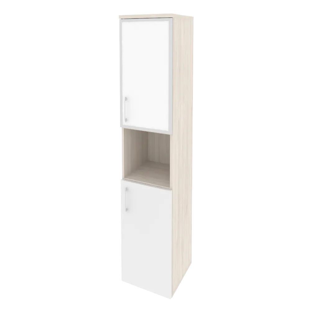 Шкаф высокий узкий правый (1 низкий фасад ЛДСП + 1 низкий фасад стекло лакобель в раме) O.SU-1.4R(R) white/black