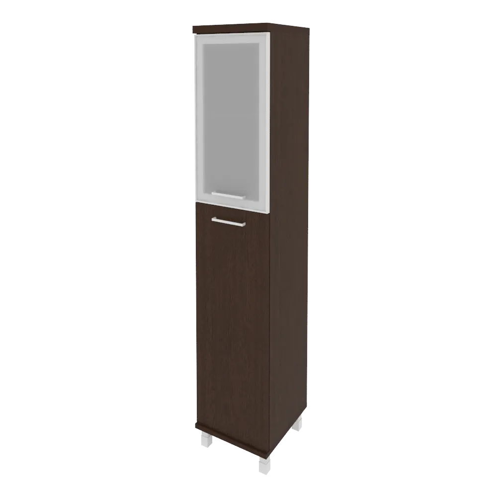 Шкаф высокий узкий правый (1 средняя дверь ЛДСП, 1 низкая дверь стекло в раме) KSU-1.7R(R)