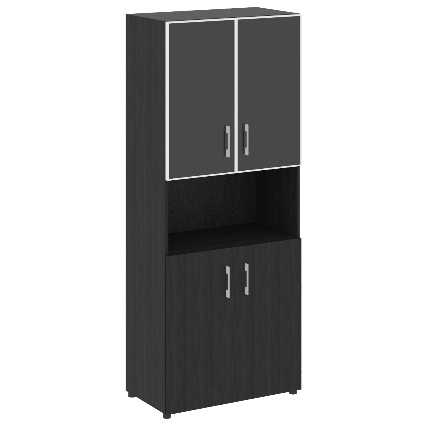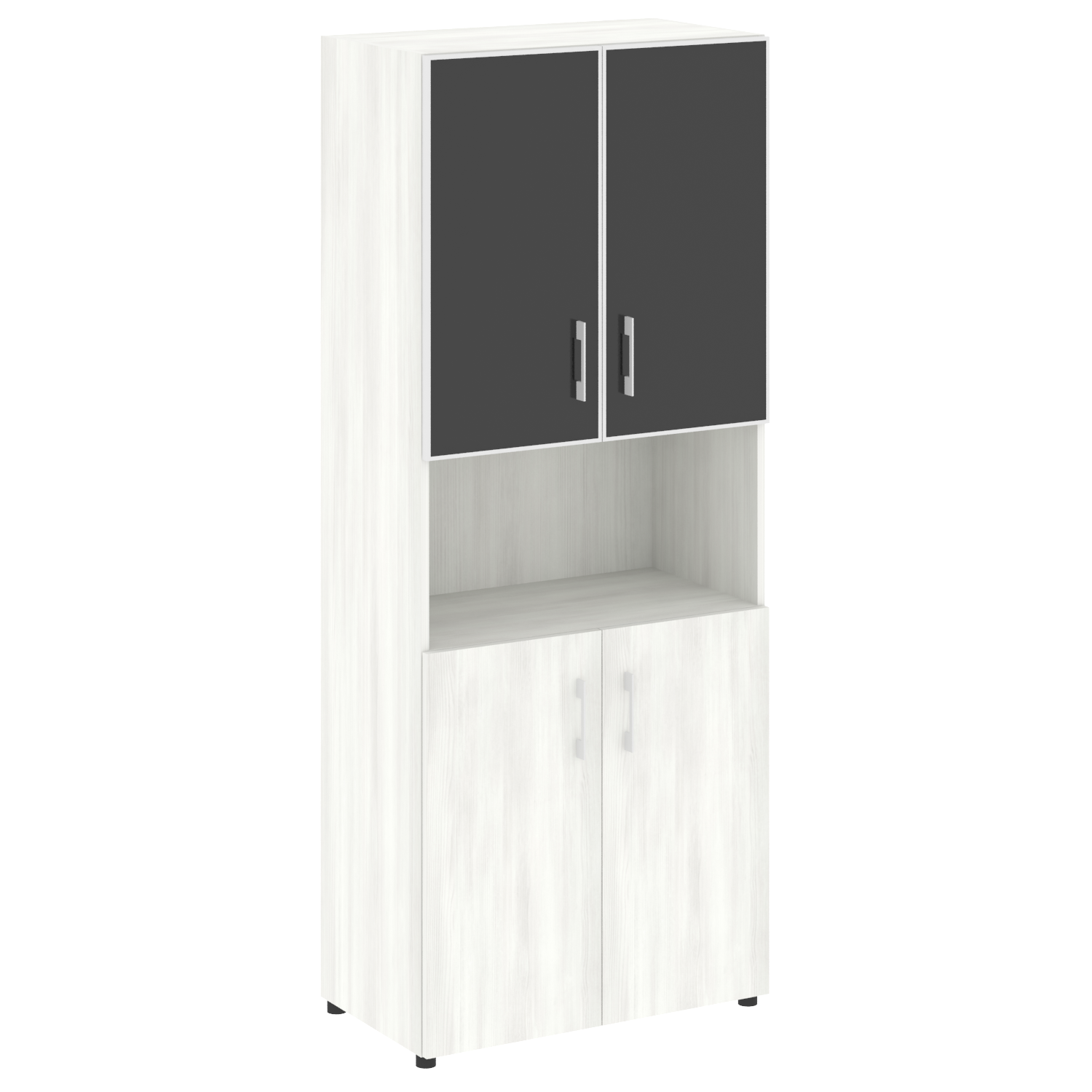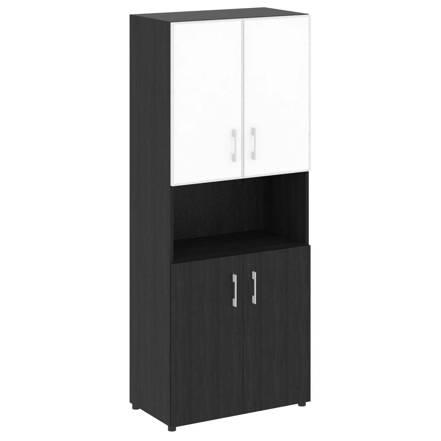 Стеллаж высокий широкий (дверь ДСП+стекло) LT-ST 1.4R white/black
