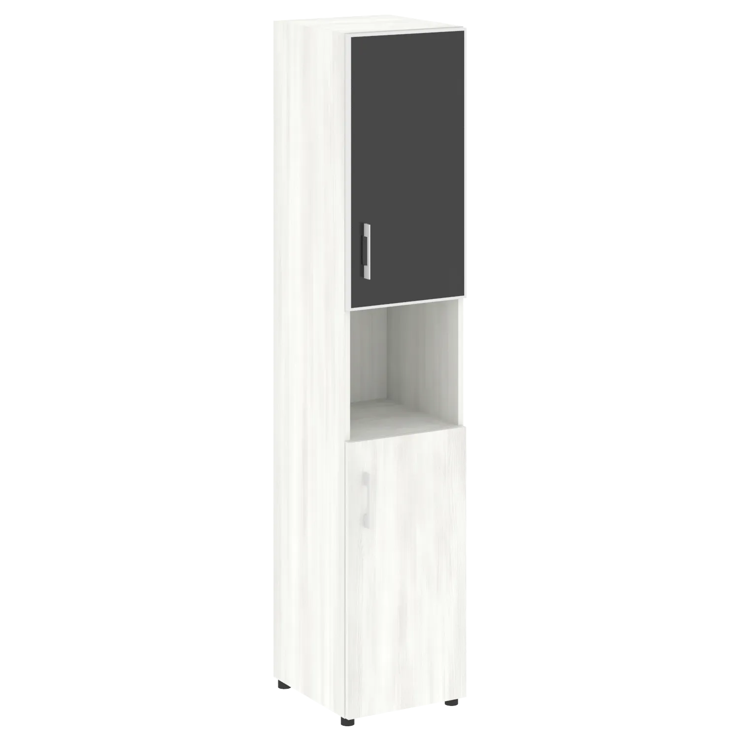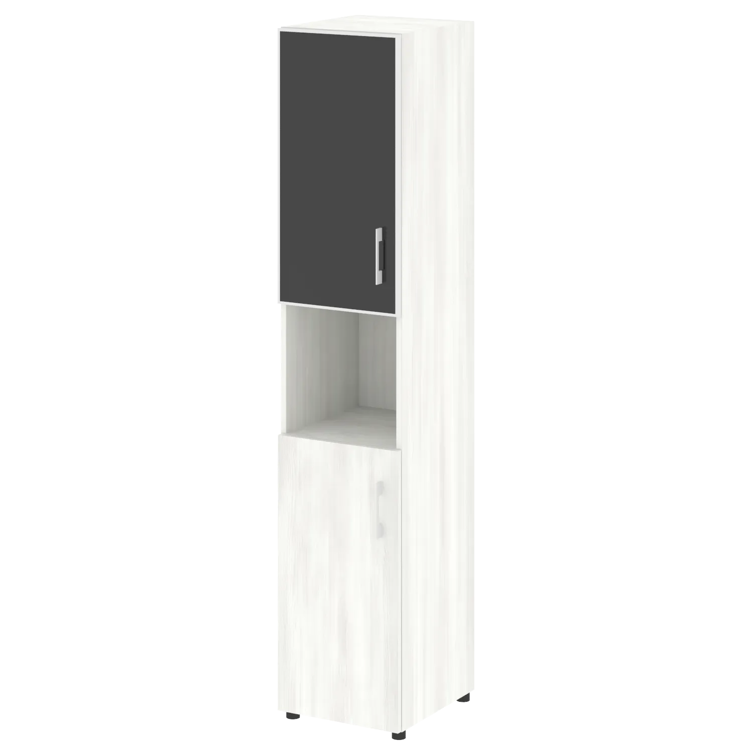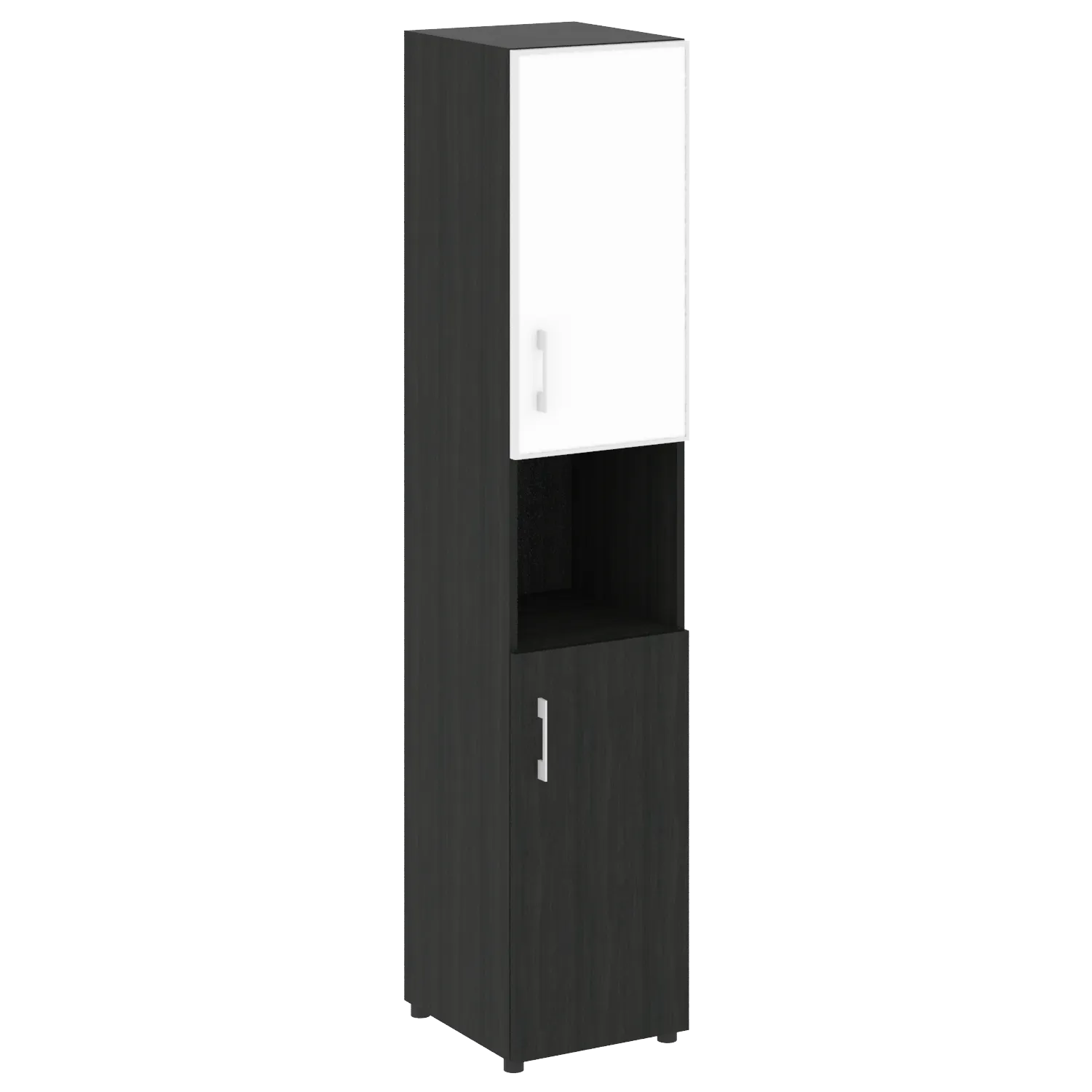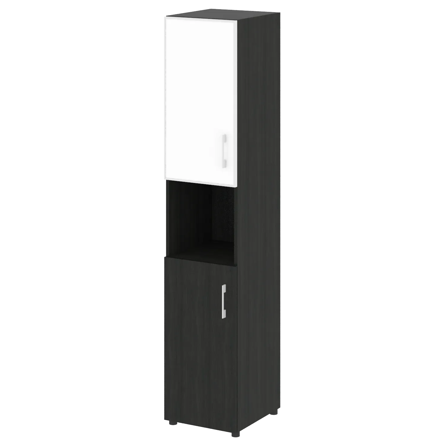 Стеллаж высокий узкий (дверь ДСП+стекло) LT-SU 1.4R white/black