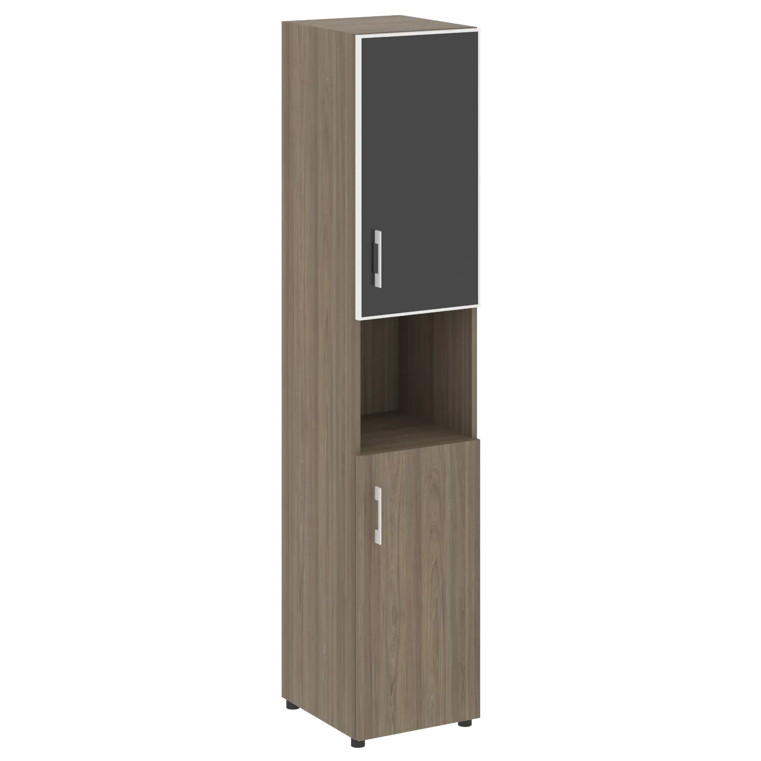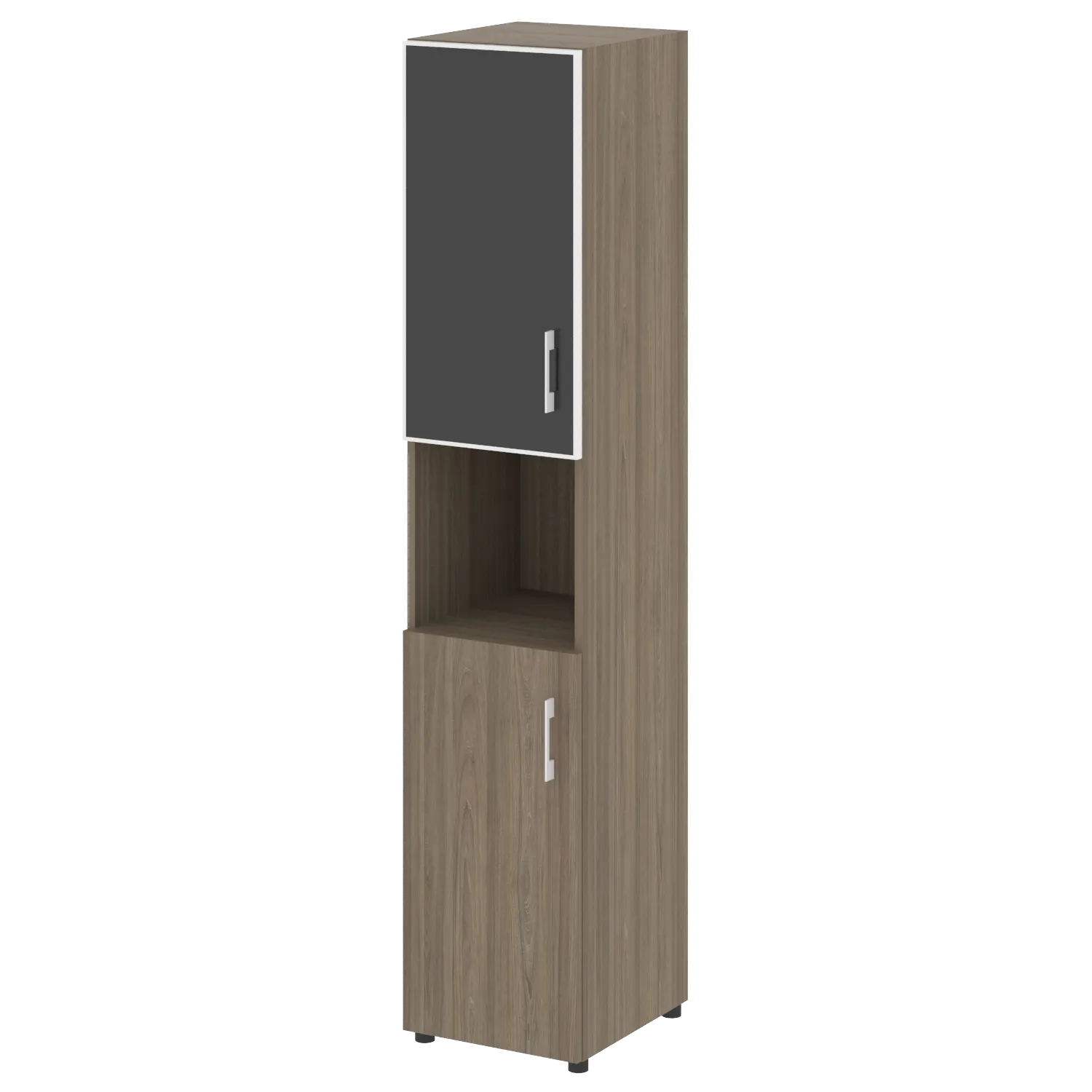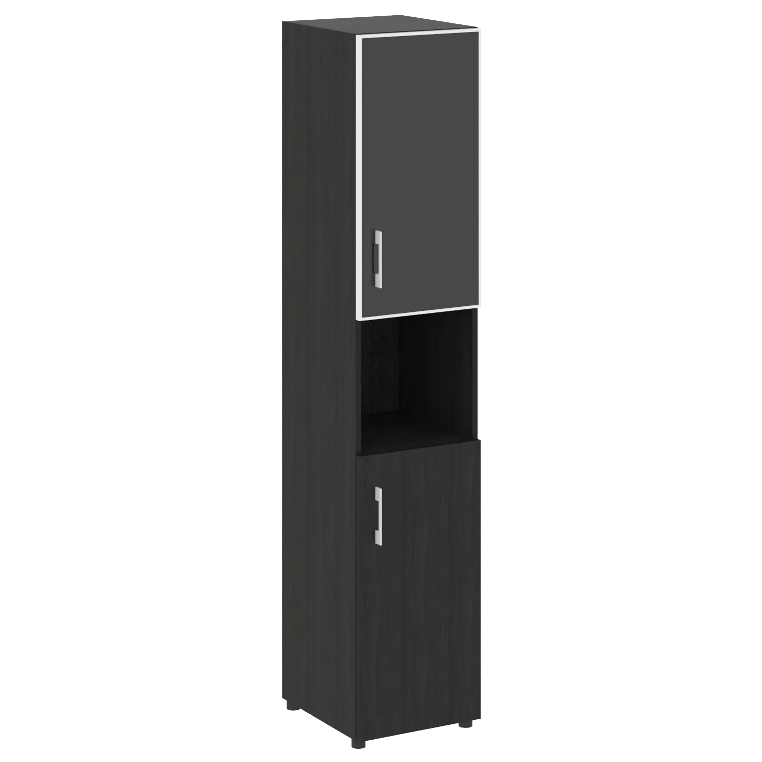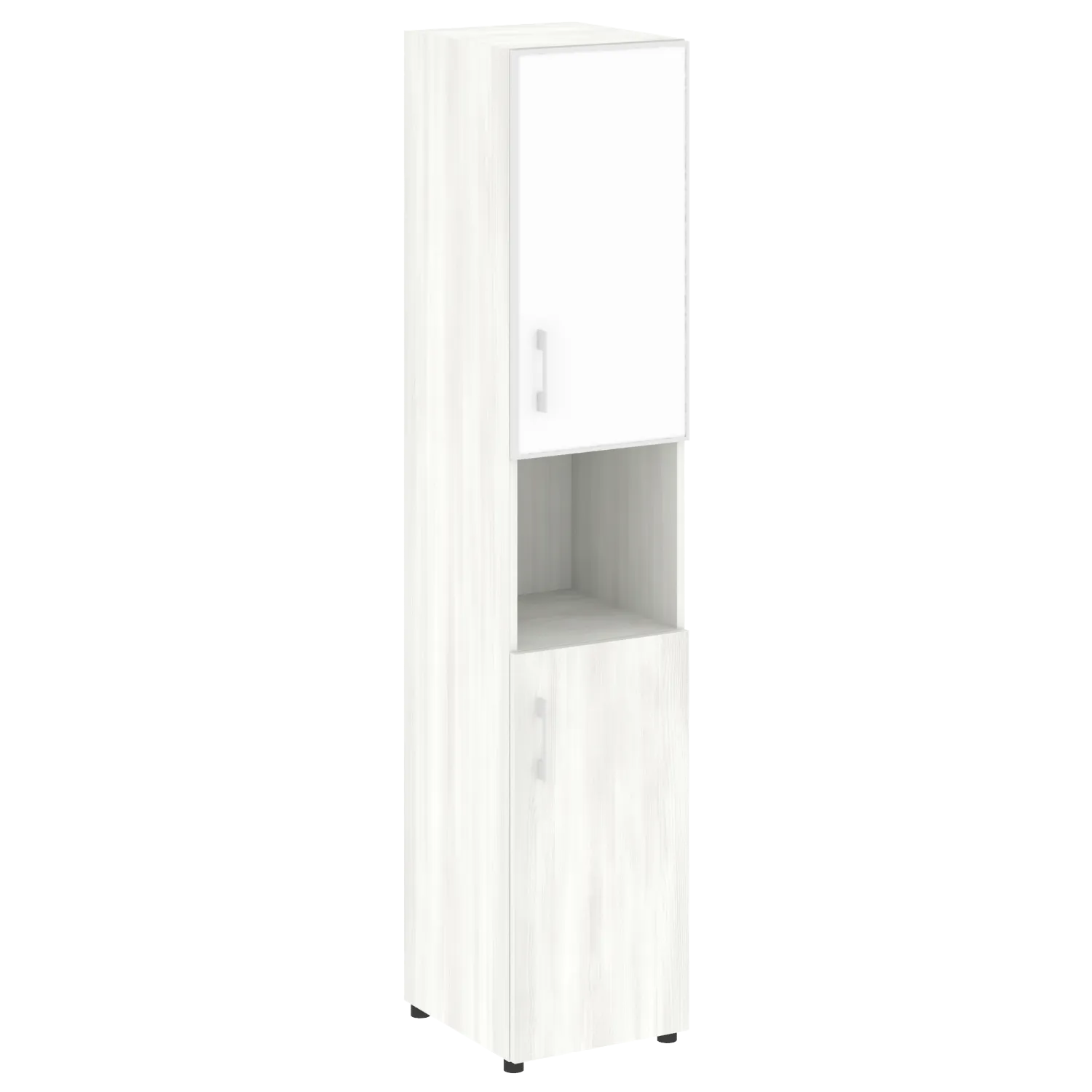 Стеллаж высокий узкий (дверь ДСП+стекло) LT-SU 1.4R white/black