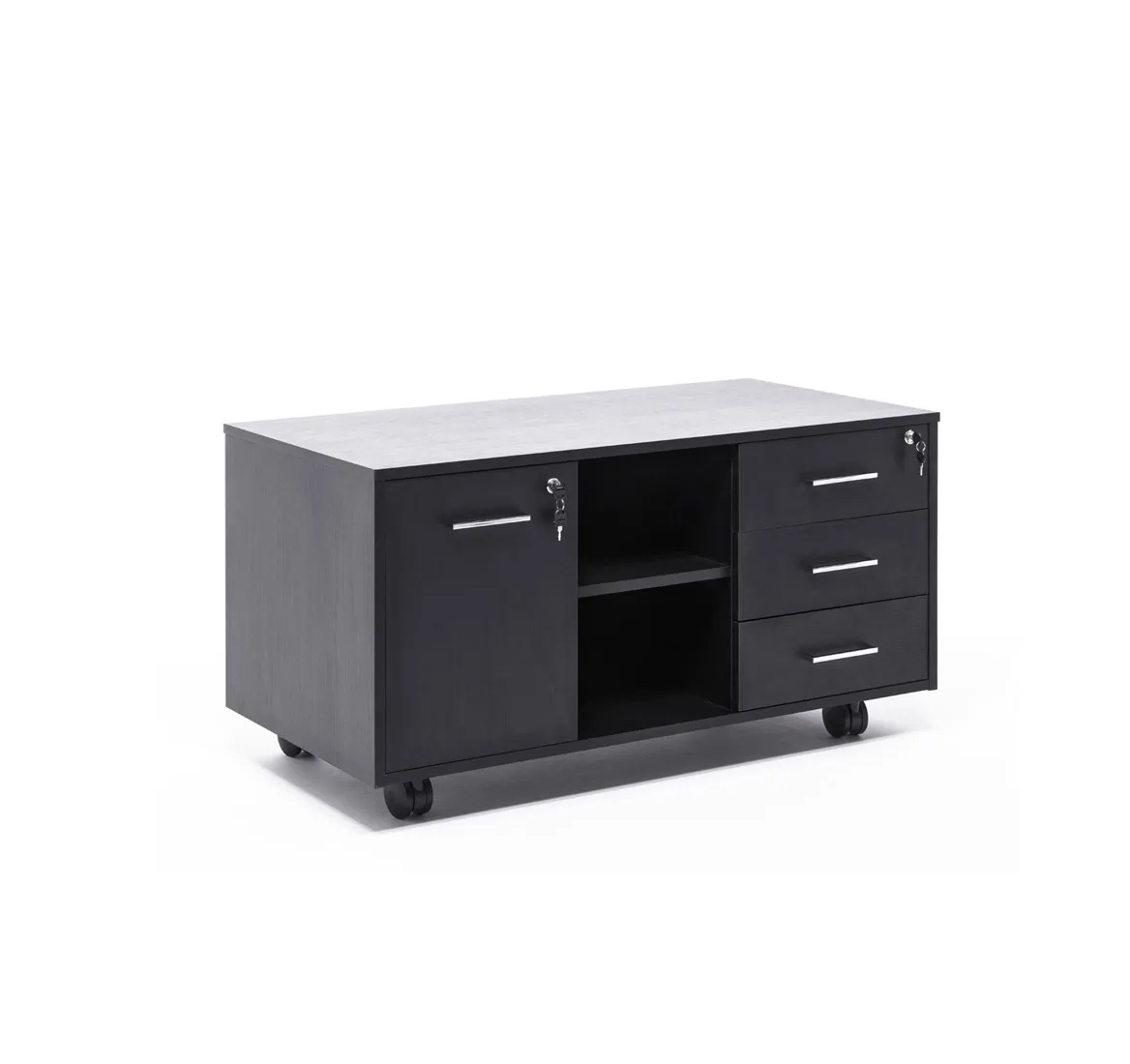 В верхнем выдвижном ящике установлен центральный замок, запирающий одновременно 3 ящика (у подкатной приставки выдвижные ящики расположены справа).